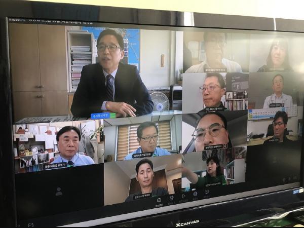 충북도는 21일 세계적인 코로나19 확산으로 글로벌 경기 침체가 계속되고 국가간 이동이 제한됨에 따라 해외 각국에 있는 국제자문관들과 도내 기업인, 도내 수출 유관기관들을 화상으로 초청하여 주요 수출국의 현지동향을 파악하고 향후 도내 수출기업이 수출방안을 강구하기 위한 화상회의를 개최하였다.