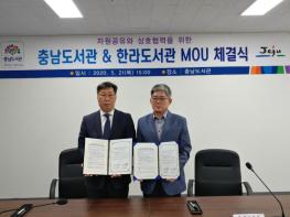 제주특별자치도 한라도서관(관장 류도열)은 21일 제주지역 대표도서관과 충남도서관(대표도서관)과 정보자원의 공동 활용과 도서관 전반의 업무협력 강화 등 도서관정보서비스 확대 활성화를 위해 업무협약을 체결했다.