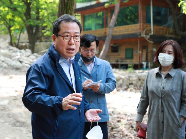 조 시장은 현장에서 이형진 생태하천과장으로부터 청학천 공원화 시범사업의 추진상황을 보고 받고, 하천 내 불법유발건축물 철거현장과 호안정비 추진상황을 꼼꼼히 둘러보며 점검하며 다양한 아이디어를 나눴다.