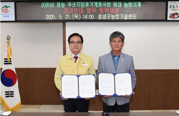 창녕군(군수 한정우)은 21일 창녕군농업기술센터에서 창녕마늘영농조합법인(대표 성연준)과 마늘 주산지일관기계화사업 농업기계 장기임대 업무협약을 체결했다.