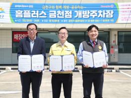 금천구(구청장 유성훈)가 5월 21일(목) 홈플러스 금천점 6층 옥상주차장에서 ‘홈플러스 금천점’, ‘금천구시설관리공단’과 부설주차장 개방 및 공유를 위한 3자간 업무협약을 체결했다고 밝혔다.
