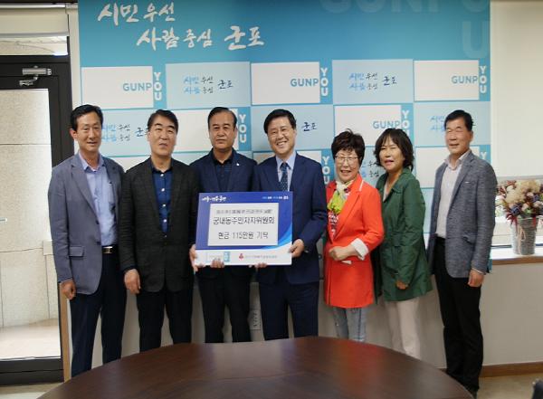 이번 기부에는 궁내동 주민자치위원 23명 전원이 동참했으며, 이들이 기부한 115만원은 경기 사회복지공동모금회 군포시 전용계좌로 입금됐다.