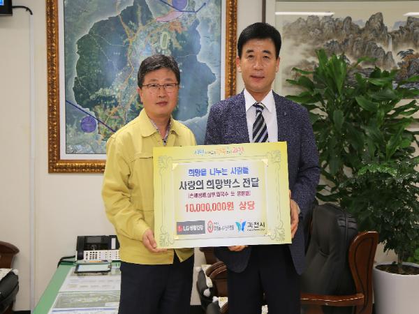 (사)희망을나누는사람들은 2018년도에 과천시와 업무협약을 맺어 매년 저소득가정을 위한 장학금과 취약계층을 위한 생수 및 선물세트를 후원하는 등 과천 시민을 위한 기부를 이어가고 있다.