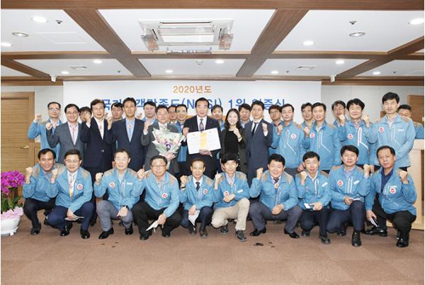이번 인증식에서는 한국생산성본부에서 공사를 직접 방문해 홍승활 사장에게 국가고객만족도(NCSI) 1위 인증서와 인증패를 전달하고 기념사진을 촬영하는 시간을 가졌다.