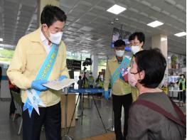 경북 영주시(시장 장욱현)는 지난 22일 영주역, 터미널 및 주요 관광지에서 시청 공무원 300여명이 참석한 가운데 ‘코로나19’ 예방과 함께 ‘포스트 코로나’대비 지역 경제 활성화를 위한 「클린&안심 영주」 캠페인을 실시했다.