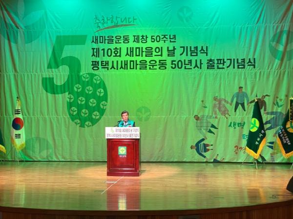 정장선 평택시장은 “새마을운동제창 50주년 새마을의 날 기념식 및 평택시새마을운동 50년사 발간을 진심으로 축하드리며, 50년사를 통해 새마을운동의 역사와 의미를 접할 수 있게 되어 기쁘다.”며 “새롭게 시작하는 50년, 지금까지 그래왔듯 따뜻한 마음과 조건 없는 헌신으로 평택의 성장을 뒷받침하는 든든한 버팀목이 되어 주시길 바란다.”고 말했다.