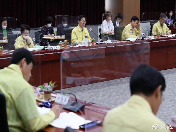 양승조 지사와 관련 실·국장, 도경찰청, 도교육청, 국민연금공단 대전지역본부 등 6개 기관 관계자 등 30여 명이 참석한 가운데 연 이번 회의는 보고, 종합토론 등의 순으로 진행했다.