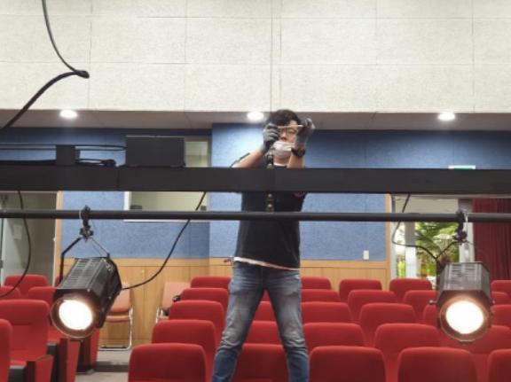 오산문화재단 공연팀 무대전문인력(무대, 조명, 음향)감독들이 관내 학교와 도서관에서 운영하는 문화시설을 찾아가 재능기부로 기술 점검을 펼쳐 큰 호응을 얻고 있다.
