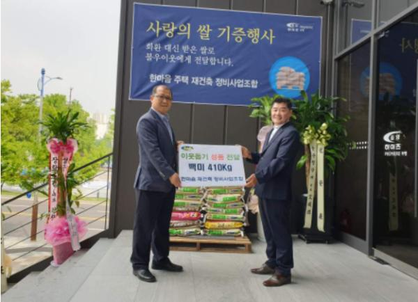 안교운 한마음 재건축 정비사업조합장은 “재건축 아파트 모델하우스를 오픈하면서 축하 화환대신 쌀을 받았다”며 “코로나19로 시름에 빠진 어려운 이웃에게 작게나마 온정을 전하고 싶었다”고 말했다.