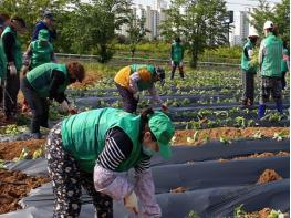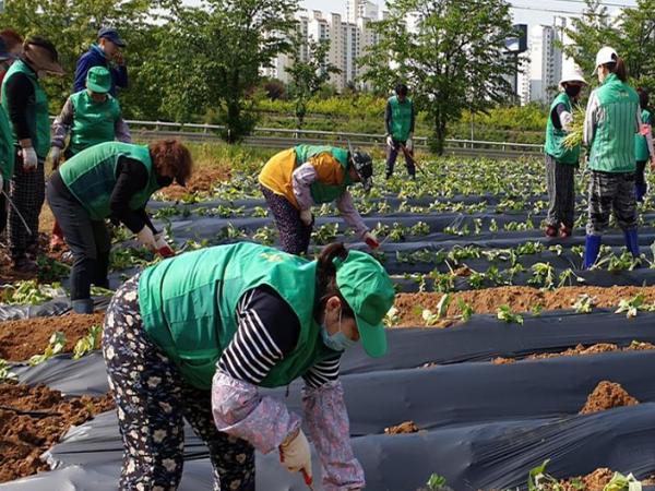 서구새마을회는 이날 도시농업 활성화를 위해 분양받은 텃밭 650평에 강화 속노랑 고구마 순 9천 주를 심었으며, 앞으로 수확할 때까지 꾸준히 잡초제거, 물주기 등을 진행할 예정이다.