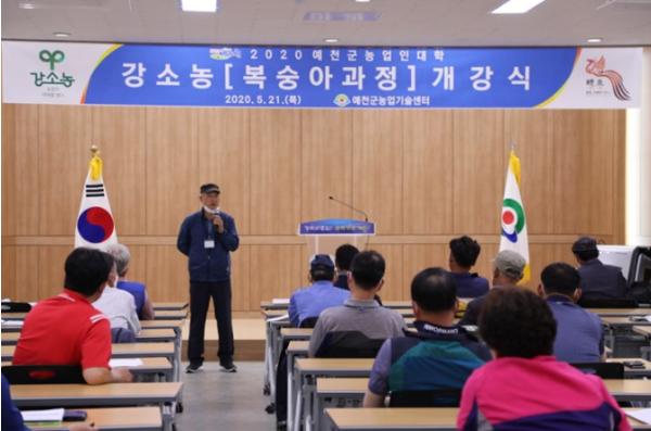 예천군농업기술센터(소장 최효열)는 21일 오후 7시 농업인회관 3층에서 작지만 강한 농업 강소농(强小農) 육성을 위한‘2020 예천군농업인대학 강소농(복숭아과정)’개강식 및 기본교육을 진행했다.