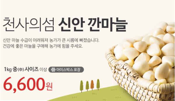 이번 기획 상품은 신안농협에서 생산한 지난해산 깐마늘 50톤이며, 1㎏ 한 봉지를 아이스박스에 포장해 6천 600원에 할인 판매한다.