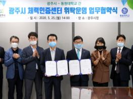 광주시 신동헌 시장과 동원대학교 이걸우 총장은 지난 25일 ‘광주시 체력인증센터 운영을 위한 위탁운영 협약’을 체결했다.