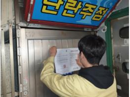 의정부시(시장 안병용)는 5월 23일 경기도 공고 제2020-1065호에 의거, 도 내 다중이용시설(유흥주점, 감성주점, 콜라텍, 단란주점)에 대한 집합금지명령에 따라 지역 내 유흥?단란주점 등 395개 시설에 대해 집합금지명령문을 부착하고 6월 7일까지 행정명령 준수여부를 점검한다.