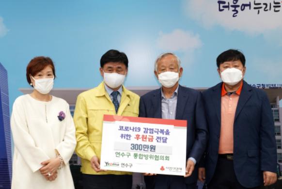인천시 연수구 통합방위협의회는 지역사회의 코로나19 극복에 힘을 보태고자 인천사회복지공동모금회를 통해 연수구(구청장 고남석)에 25일 후원금 300만원을 기탁했다.