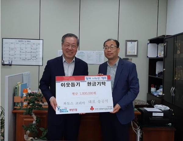 와토스 코리아(주)는 45년간 화장실용 자재를 생산, 판매하는 기업으로 송공석 대표는 “긴급재난지원금이 더 필요로 하는 분들에게 쓰여 지길 바란다며 코로나19로 어려운 시기에 도움의 손길이 필요한 취약계층에게 후원을 할 수 있게 되어 매우 기쁘다.”고 기탁 소감을 전했다.