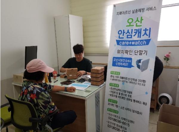 현재까지 오산시 치매안심센터는 노인 162명에 안심캐치를 배부하고 모니터링하고 있으며 162명에 배회인식표 발급, 174명을 지문 사전 등록했다.