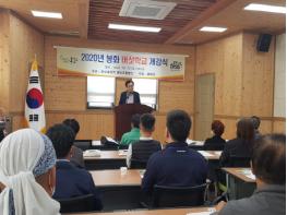 봉화군(군수 엄태항)은 5월 23일 문수골권역 문화복지센터에서 수강생 30여명이 참석한 가운데 2020년 봉화 버섯학교 개강식을 갖고 본격적인 교육 일정에 들어갔다. 이날 개강식은 코로나 19 확산 방지를 위해 ‘고강도 사회적 거리두기’로 2개월이 연기되어 ‘생활 속 거리두기’로 전환됨에 따라 개최됐다.