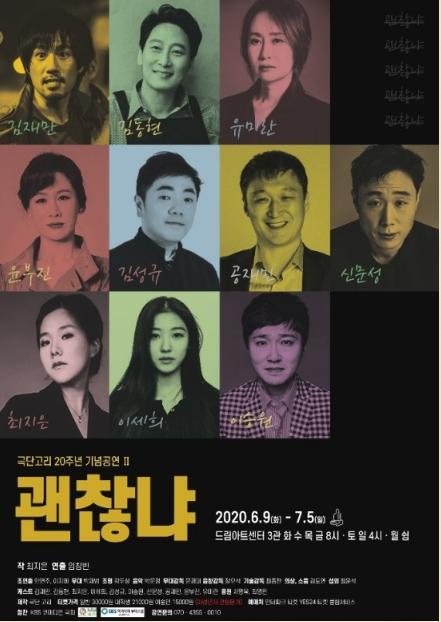 이러한 시기에 극단 고리는 창단 20주년을 맞이해 대한민국 공연의 메카인 서울 종로궁 위치한 대학로에서, 순수 창작극 <괜찮냐>를 다시 무대에 올린다.