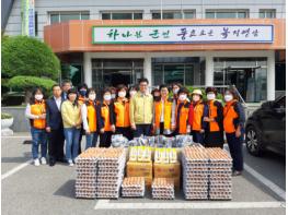 학산면여성의용소방대는 지난 5월 22일 의용소방대원 14명 및 학산면 맞춤형복지팀을 경유하여 함께 독거노인, 장애인 등 100여 가구의 저소득층 이웃에게 국수 50개, 미역 50개, 달걀 104판 등 100만 원 상당의 식료품을 전달했다.