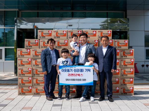 양산시의회 이장호 의원은 지난 27일 웅상출장소를 방문해 어려운 이웃에게 전달해 달라며 라면 52박스를 기탁했다.
