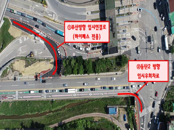 임시개통구간은 총 2개 구간으로 1구간은 경부고속도로 부산방향에서 동탄1신도시 방면 임시연결로로 하이패스가 설치됐다.