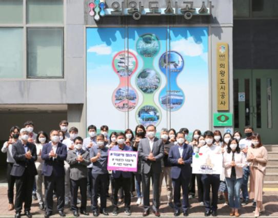 이번 캠페인에는 최욱 사장과 임직원이 함께 했으며, 의왕도시공사 홈페이지와 페이스북에 ‘덕분에 챌린지’해시태그와 사진을 게재했다.