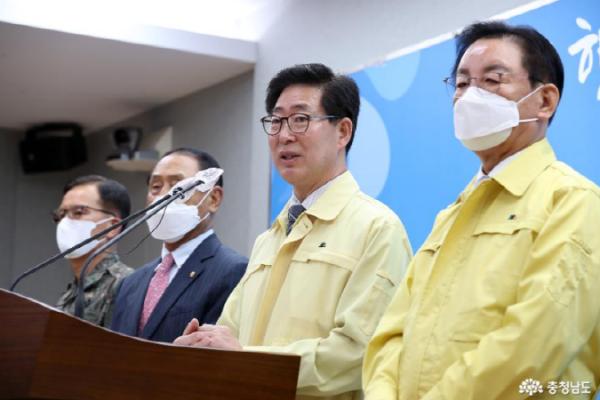 계룡세계군문화엑스포조직위원회 공동위원장인 양승조 지사와 최홍묵 계룡시장, 김진호 민간위원장은 28일 도청 프레스센터에서 기자회견을 열고 “계룡세계군문화엑스포를 1년 연기하기로 최종 결정했다”고 발표했다.