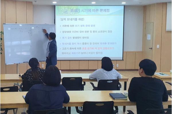 12명으로 구성된 스터디 그룹은 지난 14일 첫 모임을 시작으로, 벼와 고추, 콩, 토양 등 농업의 기본 소양을 우선 습득했다. 지난 28일에도 모인 이들은 `고품질 벼 재배기술`에 대한 관련정보를 서로 배우고 논의하며, 농가들의 길잡이 역할을 해줄 역량을 키워나갔다.