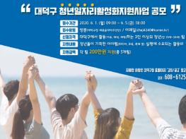 대전 대덕구(구청장 박정현)가 오는 5일까지 청년의 창의적 사업 아이템을 발굴하고 사회활동 참여 기회를 제공하기 위해 ‘청년 일자리 활성화 지원 사업’ 참여자를 모집한다.