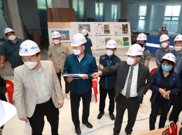 이어 하반기 개관을 앞두고 막바지 공사가 한창인 이석영 뉴미디어도서관 건립현장으로 이동한 조 시장은 관계자들과 내부 계단과 벽, 바닥 소재까지 하나하나 꼼꼼히 들여다보며 마감작업 진행상황 등을 점검했다.
