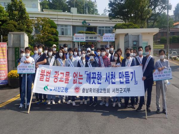 이날 행사에는 서천군 공무원과 충청남도옥외광고물협회 서천군지부 회원 등 30여 명이 참여했으며, 행인과 상인들을 대상으로 불법광고물의 근절과 건전한 광고물 바로 달기 등을 홍보했다.