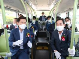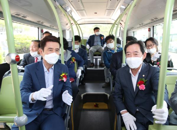 이강덕 포항시장과 한진욱 포항시의회부의장 등은 시승구간을 시승하며 전기버스에 대한 설명과 전기버스의 쾌적성, 안락성, 안전성 등을 체험하고 다양한 의견을 나누었다.