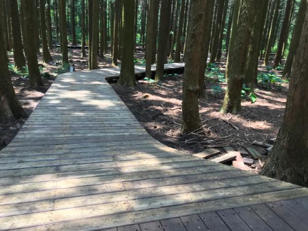 서귀포시 산림휴양관리소는 사려니숲 무장애나눔길 사업이 2020년 복권기금(산림청 녹색자금) 총 사업비 8억 6,000만 원 중 국비 5억 7,000만 원을 지원 받아 6월 말 완공을 목표로 조성중이라고 밝혔다.