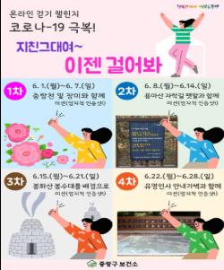 중랑구(구청장 류경기)가 코로나19로 활동량이 감소한 구민들을 위해 오는 29일까지 ‘온라인 걷기 챌린지’를 진행하다고 밝혔다.