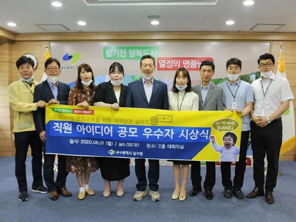 대구광역시 남구청(구청장 조재구)은 지난 1일, 2층 회의실에서 ‘지역상권 활성화를 위한 직원 아이디어 공모’ 우수자 시상식을 개최했다고 2일 밝혔다.