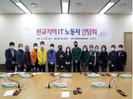 이 날 간담회 자리에서는 IT업계의 노동환경실태와 각종 애로사항에 대한 현장 노동자들의 목소리를 청취하고, 특히 코로나19 재난상황으로 불어닥친 고용불안과 장시간 노동환경, 노동자의 안전문제 해결 방안 등에 대한 심도있는 논의가 오갔다.