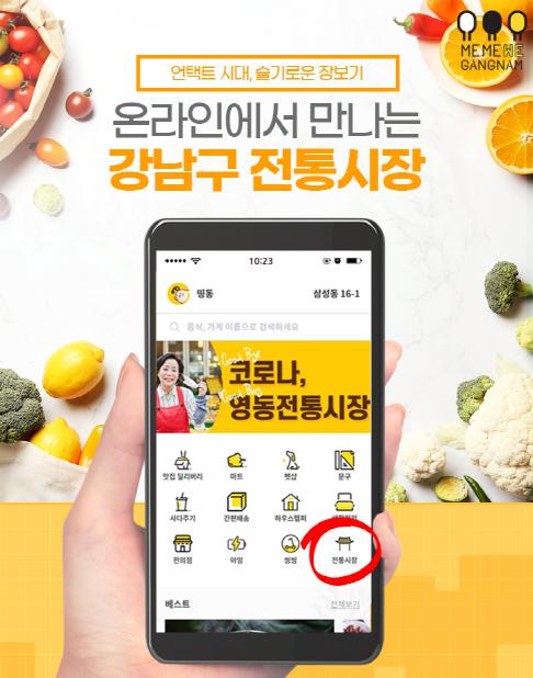 ‘기분 좋은 변화, 품격 있는 강남’을 구현 중인 강남구(구청장 정순균)가 언택트 시대를 맞아 지난달 20일부터 관내 전통시장에서 판매하는 상품을 주문할 수 있는 온라인 장보기를 운영 중이다.
