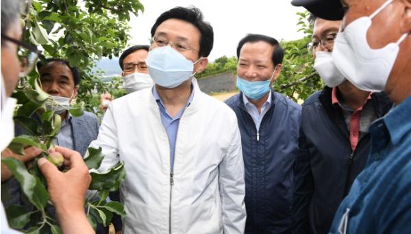 거창군은 2일 농림축산식품부 이재욱차관이 사과 농가를 방문해 현장 저온피해 상황을 점검하고 애로사항을 청취했다고 밝혔다.