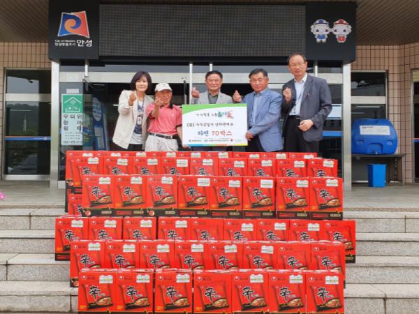 이날 기탁한 라면 70박스는 김학균 대표가 긴급재난지원금과 경기도·안성시 재난기본소득으로 마련하여 그 의미를 더 했다.