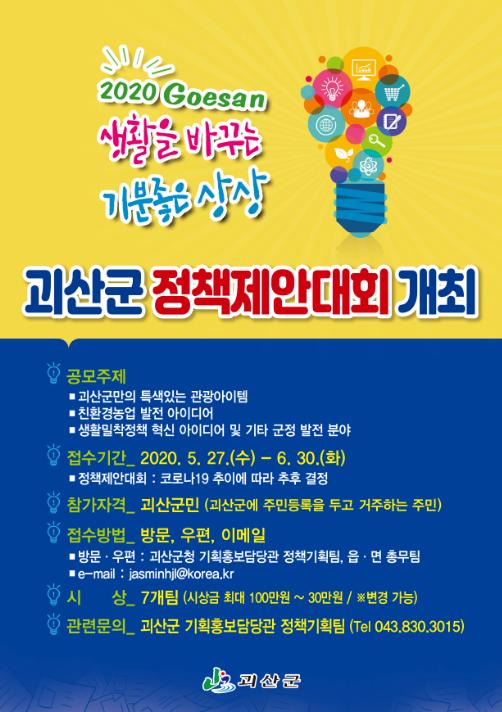 정책제안대회 관련 자세한 사항은 군 홈페이지(www.goesan.go.kr)를 참고하면 된다.