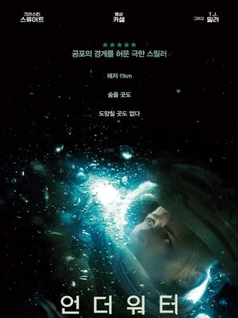 '언더워터'는 칠흑 같은 어둠, 아득한 심연의 해저 11km. 큰 지진과 급류로 기지가 파괴되자 가까스로 살아남은 대원들이 목숨을 건 탈출을 시도하던 중 극한 위험 속 미지의 존재와 사투를 벌이게 되는 SF 공포 스릴러.