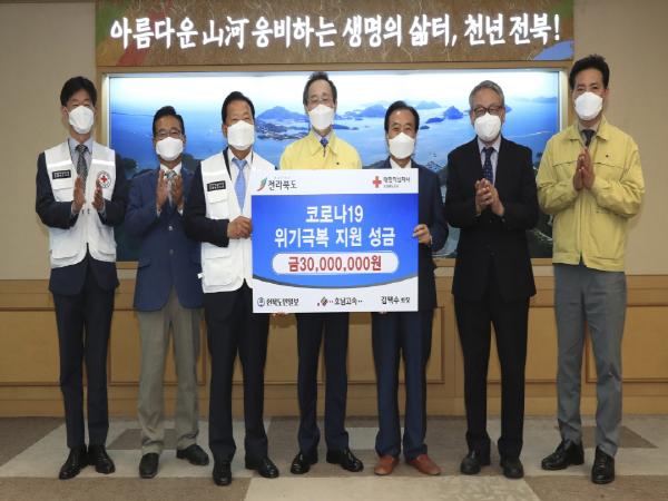 호남고속과 전북도민일보(회장 김택수)가 기탁한 성금 3천만원이 최근 순창군의 취약계층 100가구에 전달됐다. 호남고속과 전북도민일보(회장 김택수)는 지난달 13일 전북도청을 방문해 코로나19 피해로 어려움을 겪고 있는 이웃들을 위해 써달라며 대한적십자사 전북지사에 성금 3천만원을 기탁했다.