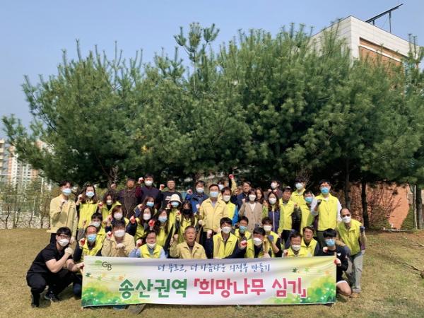 송산권역(권역동 국장 이용기)은 민선 7기 역점사업인 The G&B City 프로젝트의 일환으로 민간의 나무심기 참여 분위기를 조성하기 위한 ‘희망나무 심기’ 운동을 적극 추진하고 있다.