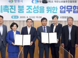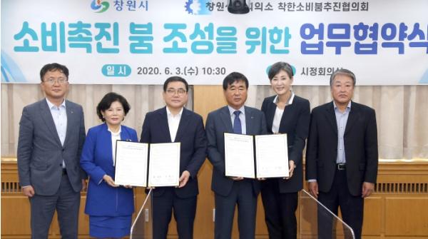창원시(시장 허성무)는 3일 창원상공회의소 착한소비붐 추진협의회(회장 한철수)와 코로나19로 인해 침체된 지역경기 회복을 위해 소비촉진 붐 조성을 위한 업무협약을 체결했다고 밝혔다.