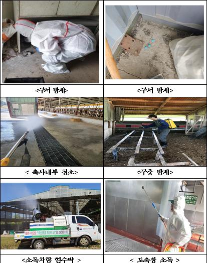 특히, 양돈농장에서는 아프리카돼지열병(ASF) 바이러스 유입방지를 위해 매주 수요일 축산환경개선의 날을 이용하여 소독과 함께 매개체(쥐 및 파리, 모기, 해충 등) 차단 방역을 집중 실시하고 있다.