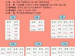 원주시립중앙도서관이 7월부터 12월까지 2020년 하반기 ‘다문화 일일 체험’을 운영한다.