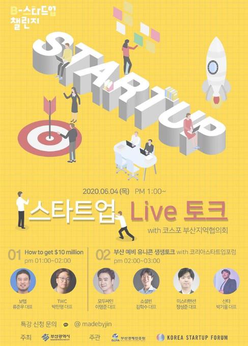 부산시(시장 권한대행 변성완)는 6월 4일 오전 11시 30분 해운대 누리마루에서 국내 최대 스타트업 공동 단체인 (사)코리아스타트업 포럼(의장 김슬아·안성우·이승건)과 대한민국 창업생태계 발전과 스타트업의 혁신성장 지원을 위한 업무협약을 체결한다고 밝혔다.