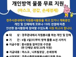 (사)경주시종합자원봉사센터는 코로나19 확산방지와 안전한 자원봉사현장을 만들기 위해 6월부터 코로나19에 따른 국가적 재난상황에서 벗어날 때 까지 한시적으로 자원봉사자들에게 개인방역물품을 지원한다.
