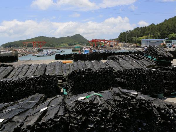 본격적인 다시마 수확 철을 맞아 완도군 금일읍에서는 다시마를 채취하고 건조하느라 어민들의 손길이 분주하다.
